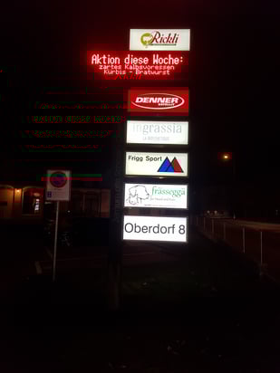 unser Werbepylon bei Nacht